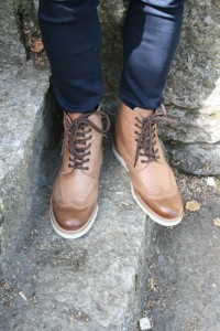 Completé el conjunto, de nuevo, con unos vaqueros pitillos, esta vez algo más oscuros y más apropiados para la noche, y con unas botas de cuero marrón, que son ideales tanto para un día de frío como para uno normal, e incluso sirven para mantener los pies protegidos si llueve (algo muy habitual por aquí).