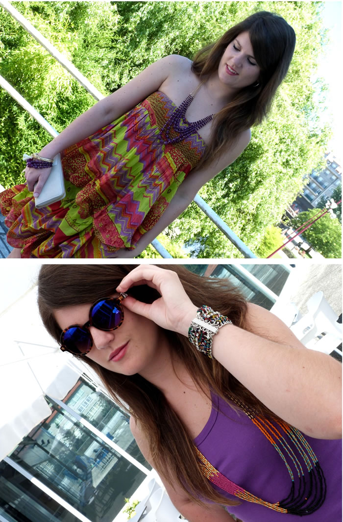 Ambos looks tienen como base la misma prenda, una falda de Mystic, que en un caso me he puesto como falda y en otro caso…. Sube la falda y ya tienes vestido!!! Es una idea original y que puede resultar genial para cambiar un poco sin gastar mucho. La falda tiene unos colores preciosos, llamativos y llenos de vida, perfectos para el verano.