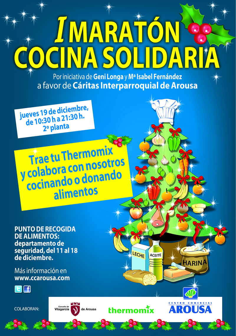 La recogida de alimentos se llevará a cabo del 11 al 18 de diciembre en horario comercial y en el departamento de seguridad del centro ubicado en la primera planta. El listado de ingredientes que se utilizarán en el maratón de cocina solidaria que se pueden donar son: